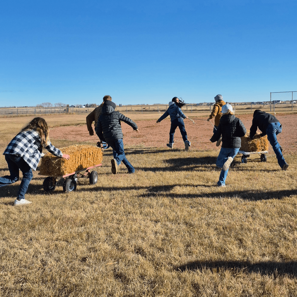 The energy reached fever pitch during the chuck wagon races. Teams strategized, laughed, and cheered as they navigated their wagons around the course. When competition got a bit lean, some of our parents even joined in for a taste of the fun.
